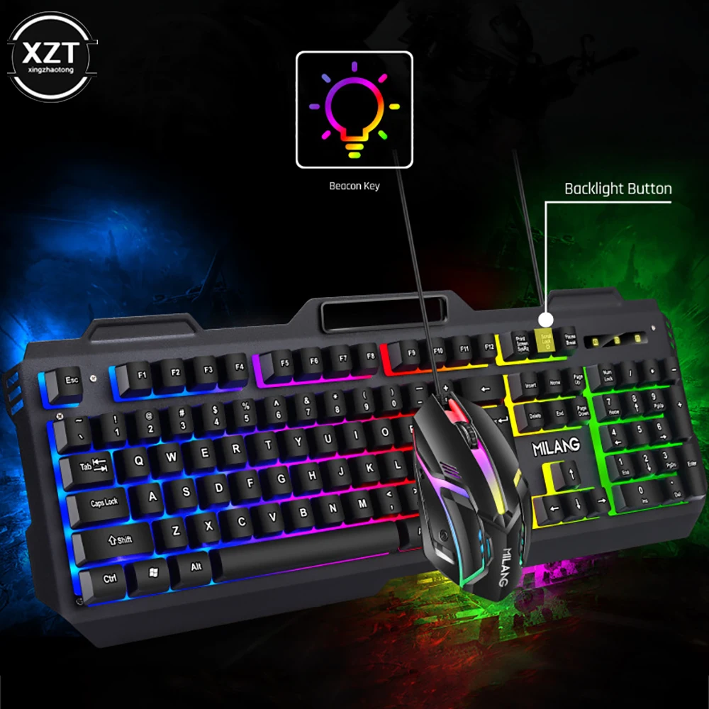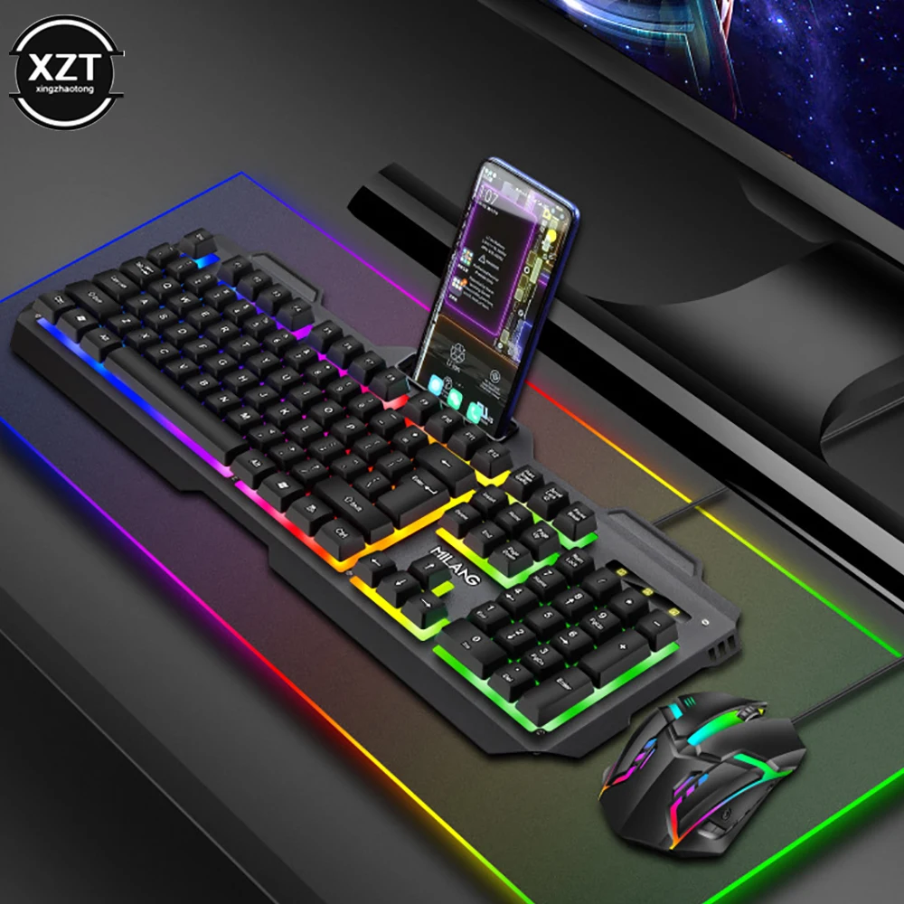 Gamer Keyboard And Mouse PC Gaming Keyboard RGB Backlit Keyboard Rubber Keycaps Wired Keyboard Mouse Gamer Gaming Mouse
